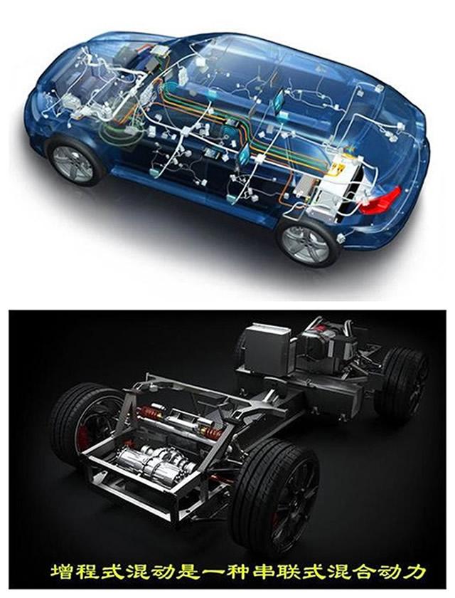 增程式混合动力汽车就是用发动机进行发电,电动机进行驱动的车辆。当电池组电量充足时采用纯电动模式行驶,而当电量不足时,车内发动机启动,带动发电机为动力电池充电,提供电动机运行的电力(即增程模式)。增程无论什么情况下,都不能由发动机直接驱动车轮行驶,仅能通过电动机驱动。但它也能够像插电式混合动力汽车—样,通过外接电源进行充电。纯电续航里程比较长,一般可达100公里以上,最高可达300公里左右。